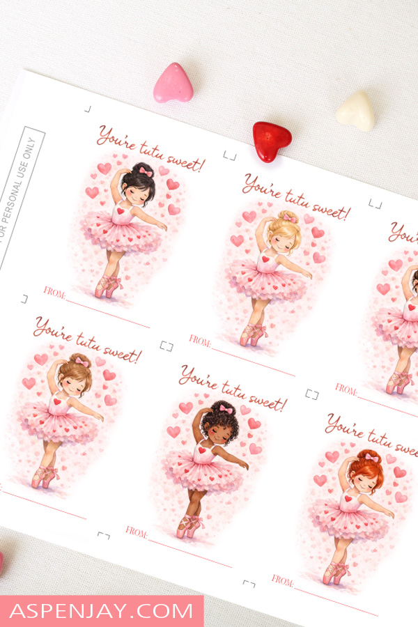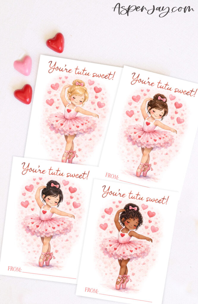 I hope these printable ballerina Valentine cards add a little extra joy to you and your little dancer’s Valentine’s Day. Whether they’re shared in her classroom, at dance class, or with close friends, I hope they bring some pretty smiles to all of their beautiful faces!